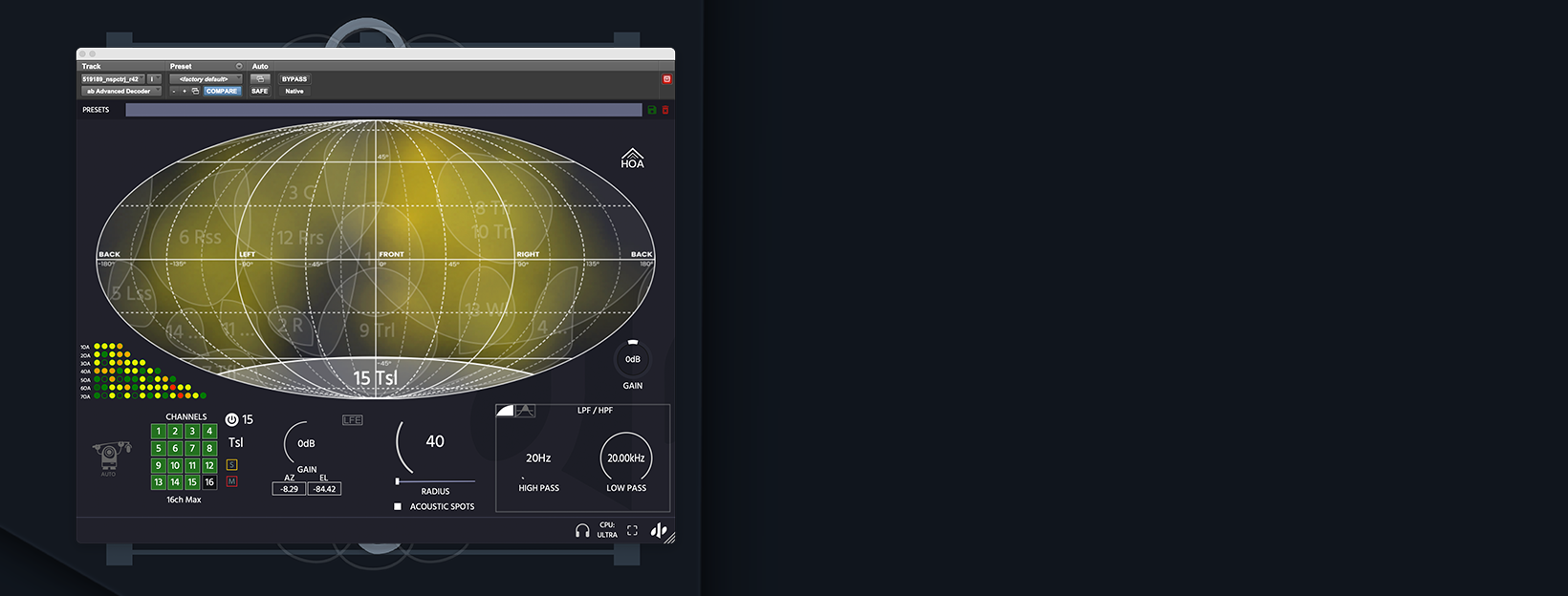 Compatible with Mono, Stereo, and Ambisonics (1OA to 7OA)